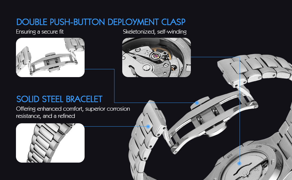 • Comfortable Fit for Daily Wear:With a folding buckle and double-button design, this watch for men ensures a secure and comfortable fit. An adjustable strap allows you to tailor it to your perfect length. Plus, it’s waterproof up to 30m, making it perfect for everyday use